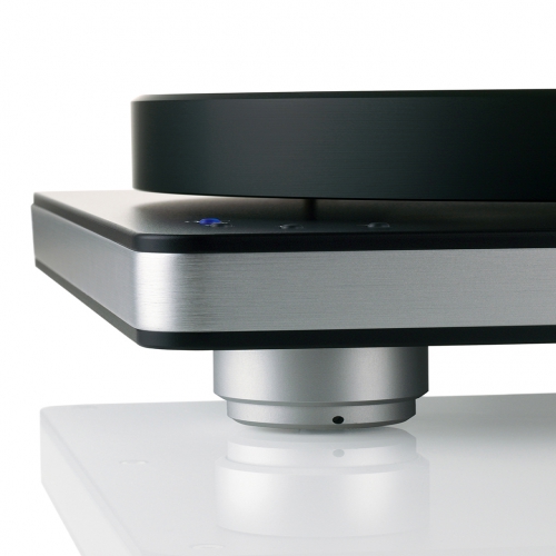 Các núm chỉnh tốc độ và phím tắt (off) đặt ở góc trái, đồng thời đóng vai trò đèn hiển thị. Mâm đĩa với độ dày 4cm tỏ ra vượt trội so với các sản phẩm cùng giá tiền. Điểm độc đáo nhất của Clearaudio Performance DC nằm ở hệ thống giá đỡ trục quay theo nguyên lý CMB (ceraicmagnetic bearing – trụ đỡ gốm từ tính) bản quyền của Clearaudio. Trong khi hầu hết mâm đĩa than sử dụng trục quay bằng kim loại được đỡ bằng ổ bi, thì mâm Clearaudio Performance DC định vị bằng trục gốm theo nguyên lý hai cực nam châm cùng chiều đẩy nhau và mâm sẽ được treo trong không khí bằng từ lực.