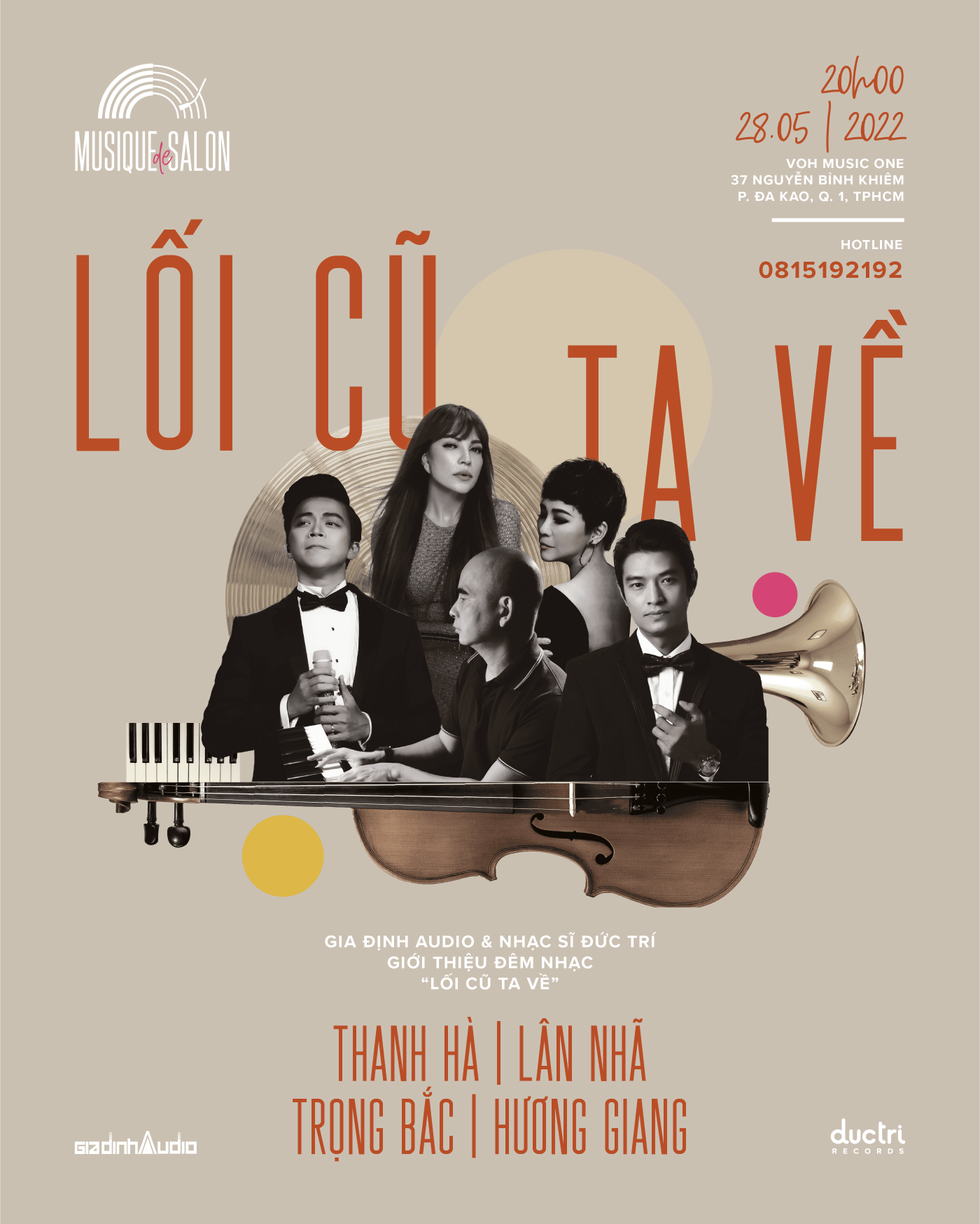 Giờ đây, không chỉ là đĩa than, chúng tôi muốn được gần gũi quý vị hơn, muốn được cùng chơi nhạc, thưởng thức âm nhạc, cùng ngắm nhìn nhau gần nhất có thể trong một thính phòng chỉ có âm nhạc và chúng ta kết nối nhau qua chuỗi live show MUSIQUE DE SALON được thực hiện bởi Gia Định Audio và nhạc sĩ Đức Trí. “LỐI CŨ TA VỀ” là live show đầu tiên chúng ta gặp gỡ nhau. Vẫn trung thành với cách hoà âm mộc mạc sâu lắng, ban nhạc acoustic, chúng tôi hy vọng live show sẽ mang đến cho quý khán giả những giây phút thư giãn đúng nghĩa.
